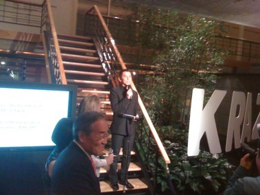 ジャパン・ソサエティのレセプションで挨拶する本木雅弘さん。「おくりびと」の主演男優として、滝田監督と共に映画祭に招かれた。