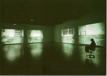 こうやって紹介していくと本当にきりがないんだけど、もう一つ紹介したいのは、ブルース・ナウマンの「マッピング・ザ・スタディオ」という作品。地下の展示室の一つをまるまる使った作品なんだけど、四つの壁に廃墟とおぼしき空間の映像が映し出され、暗闇の中に、椅子が無造作に置かれていると言う作品。ありがちと言えばありがちな作品なんだけど、ビデオ映像のざらついた感じと部屋の無機質な広がりがとてもうまく調和していて気持ちよかった。